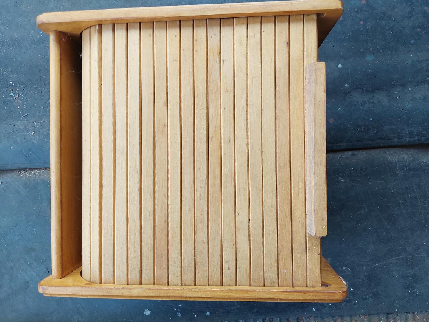 Do sprzedania fajny zabytkowy z żaluzjami dwukomorowy chlebak wykonany z drewna szlachetnego